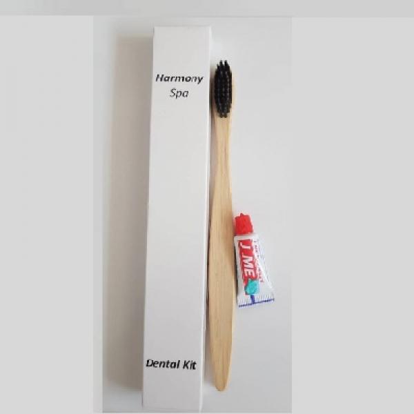 wooden toothbrush+3g toothpaste packed in box with logo